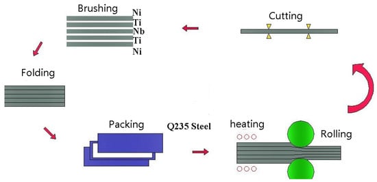 In this work, commercial pure Ni, Ti, and Nb with a thickness of 1 mm were used as raw materials. Table 1 shows the chemical compositions of Ni, Ti, and Nb.