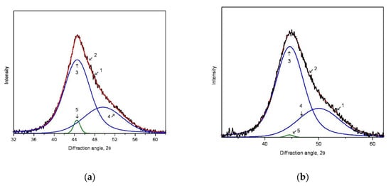 An amorphous state is unstable, and the amorphous phase decays with the formation of the crystalline phases under heat treatment. In a number of cases, transformation of the structure is more complex, and the structure changes of the amorphous phase are observed before the crystallization onset: separation to regions differing in the chemical composition and short-range order. At the same time, a heterogeneous, amorphous structure is formed. The formed amorphous regions generally do not have a sharp interface, the transition may exhibit peculiarities of spinodal decomposition [,]. Structure changes in metallic glasses before the crystallization onset were discovered in a large number of alloys [,,,,,,,,]. A lot of works [,,,,,,,] are devoted to the study of the separation of the amorphous phase and heterogeneous amorphous structure formation.