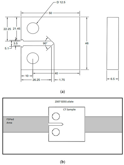 Figure 14 shows the typical variation of the load with crack opening displacement for base and FSPed materials. These load-displacement curves were used with Equations (1)–(5) to estimate the fracture toughness of base and FSPed 2507 SDSS, and the results are shown in Table 5.