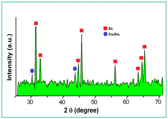 The structural characterization of the phases evolved after milling the Sn-0.7Cu powder for 45 h, as shown in Figure 1.