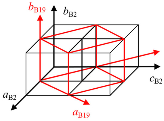 Lattice correspondence between B2 parent phase and B19 martensite phase.