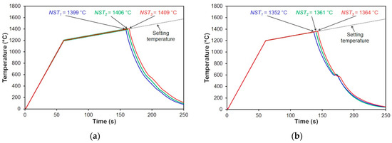 For all the steels we investigated, the zero strength temperatures calculated by using the IDS software were higher than the experimentally determined nil-strength temperatures. The difference between the ZST and NST fluctuated from 43 to 85 °C depending on the carbon content of the investigated steels. Based on these results, it appears that the nil-strength temperature determined while heating is not the same as the zero strength temperature determined during solidification of the investigated steels. This fact can be explained by different definitions of nil-strength temperature during the heating of the material [12,17,37] and definition of zero strength temperature during the solidification of the material [14,15,16]. In both cases, however, the nil-strength and zero strength temperatures decline with the increasing carbon content in the investigated steels, as shown in Figure 3.