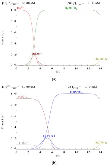 In aqueous solutions, mercury can be found as Hg(II), or Hg2+, forming a number of salts, e.g., Hg(NO3)2, and even it can be found forming anionic complexes, e.g., HgCl42−. Particularly, the presence and removal of Hg2+ from aquatic environments is one of the major topics of interest to worldwide scientists, and among the separation technologies used for this task: liquid-liquid extractions, membranes, ion-exchange, precipitation, adsorption is probably the most popular, and this is demonstrated by the number of Hg(II)-adsorption papers published in Journals every year and in comparison with these published using the others separation technologies, i.e., in 2019, more than 100 papers were dedicated to adsorption against no more than 10 using all together the others technologies [].
