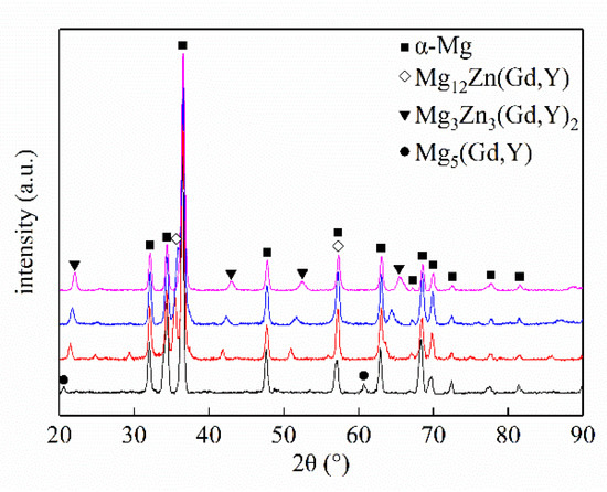 XRD results of Mg–7Gd–5Y–xZn–0.5Zr alloys.