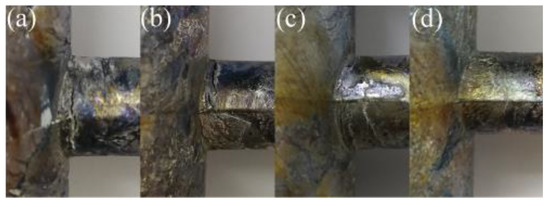 Macroscopic external hot tears of Mg–7Gd–5Y–xZn–0.5Zr alloys: (a) x = 0 wt%; (b) x = 3 wt%; (c) x = 5 wt%; (d) x = 7 wt%.