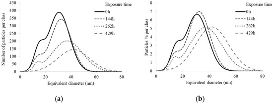 PSD shapes of spherical γ′ populations after different strain-free aging time at 750 °C: (a) number of particles; (b) percentage of particles.