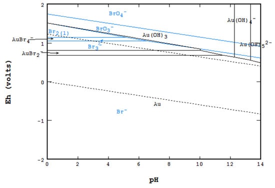 - Pesic, B.; Sergent, R.H. Reaction mechanism of gold dissolution with bromine. Metall. Mater. Trans. B 1993, 24, 419–431. [Google Scholar] [CrossRef]