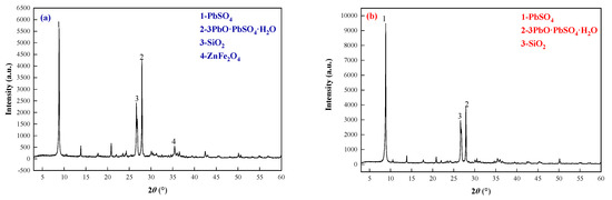 XRD diffractogram of leaching residue (a) and lead concentrate (b).