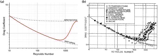Comparison of the proposed drag curve (a) and the experimental data of Hu and Kintner (b), reproduced from reference [] with permission.