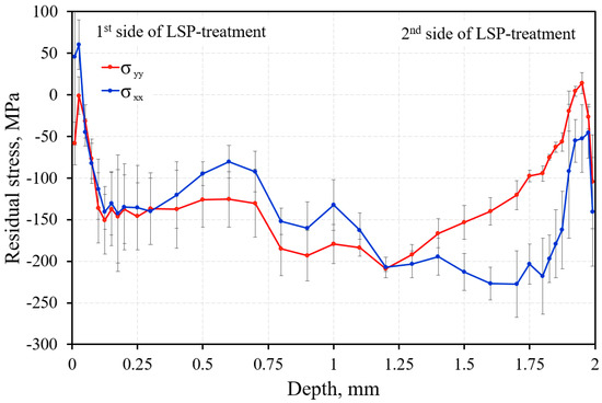 Depth resolved residual stress profile in LSP-treated specimen, as shown in Figure 6.
