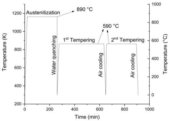The sequence of heat treatments performed in the case of the double tempering of laboratory scale test ring sections is summarized in Figure 2.