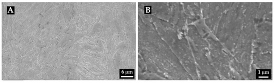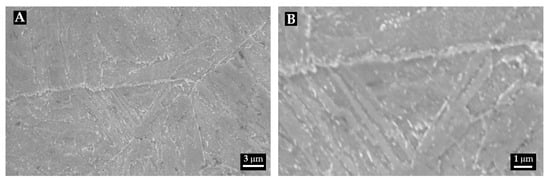 In order to investigate in deeper detail possible microstructural differences that can explain the obtained improvement in impact toughness, SEM observations were performed on the three samples, whose results are reported in Figure 5, Figure 6 and Figure 7.