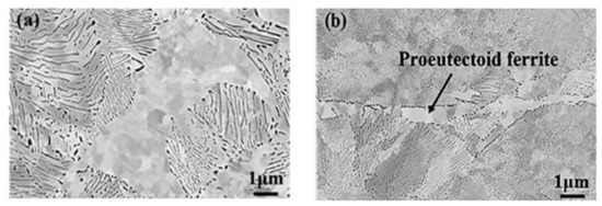 The scanning electron microscopy (SEM) micrographs of the original microstructure of the wheel samples. (a) ER8 wheel steel, (b) SSW-Q3R wheel steel.