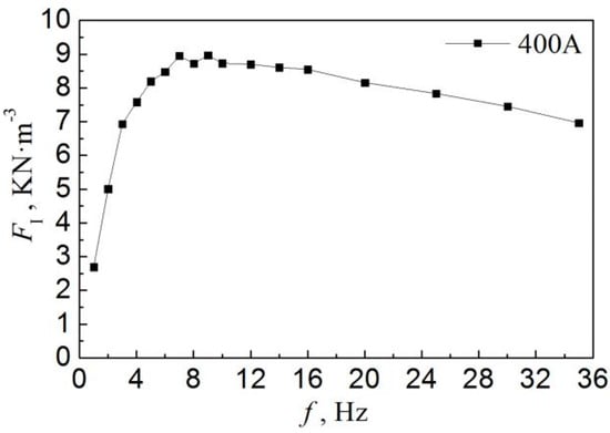 - When the current intensity of M-EMS is 400 A, the current frequency increases from 1 to 35 Hz; the electromagnetic force first increases and then decreases. When the current frequency is 9 Hz, the electromagnetic force reaches its maximum value. The electromagnetic force increases with the increase of the current intensity.