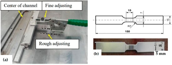 Presentation of (a) jig for clamping the work pieces during laser welding and (b) specimen for tensile-shear testing.
