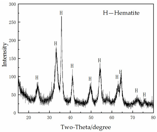 After pre-roasting, the phase and structure of calcine were changed. Figure 3 shows the X-ray diffraction analysis of laterite nickel ore roasted at 400 °C for 1 h, from which we can see that the main phase of calcine is hematite.