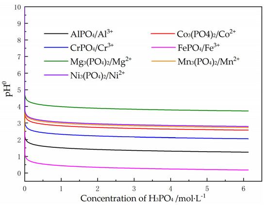 Initial precipitation pH of metals phosphate as the function of H3PO4 concentration.