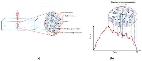 A schematical representation of the crack propagation throughout the cross-section of the tested specimens and the effects of the microstructure on the force−time curve is seen in Figure 13.