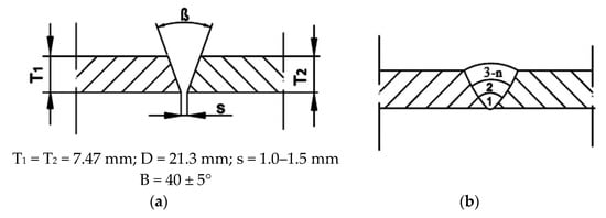 Scheme of (a) edge preparation for welding, (b) welding sequence.