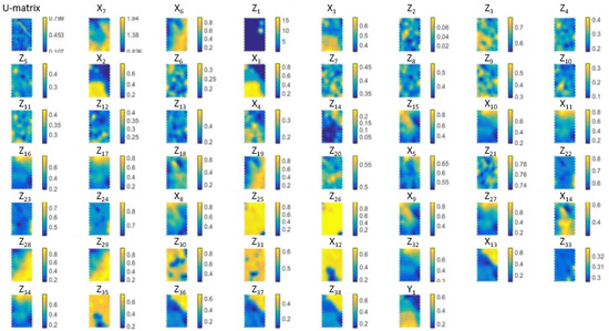 - Lötsch, J.; Ultsch, A. Exploiting the Structures of the U-Matrix in Advances in Self-Organizing Maps and Learning Vector Quantization. In Proceedings of the 10th International Workshop WSOM, Mittweida, Germany, 2–4 July 2014; Villmann, T., Schleif, F.M., Kaden, M., Lange, M., Eds.; Springer: Cham, Germany, 2014. [Google Scholar] [CrossRef]