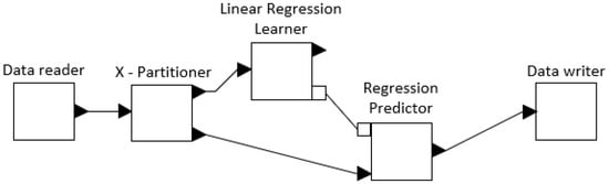 In this case, the predictor was developed with the open software KNIME Analytics Platform v4.1 (KNIME AG. Zurich, Switzerland) [27], and the diagram block is shown in Figure 4. For the validation, the X-Partitioner block is used, which divides the total set of samples in ten groups, taking eight for creating the model and two for testing. This process is repeated ten times, taking the groups randomly to avoid the overestimation of the error done when fixed learning and test groups are taken.