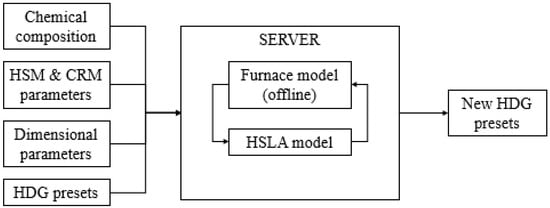 Since not all of these parameters are completely independent in the sense that the own limitations of the furnace (heating capacity and the maximum speed of the line for example) or the interrelation between them (changes in the temperature or speed will modify the value of the time–temperature parameter), it is necessary to include in the architecture an element which provides the required consistency. In this case, the HSLA models are coupled with a furnace model developed in-house [30]. The aim is to avoid inconsistencies in the results, and in case of modifying any parameter of the furnace, the rest of them are also recalculated and used in the calculations of the HSLA model.