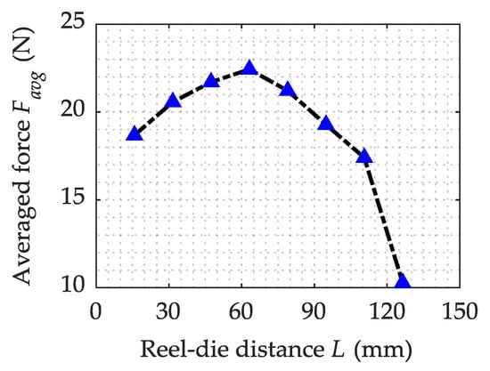 FEM calculation results of average ultrasonic drawing forces at different distances between the die and the reel drum.