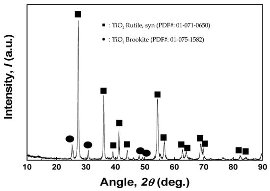 (5) A series of experiments were conducted, such as hydrolysis from Ti solution, washing, and sintering at 700 °C, to ensure that the TiO2 had a purity above 99.9%. The obtained phases of powder were found to be rutile and brookite by XRD analysis, and the morphology of TiO2 had a spherical shape and a diameter of approximately 2 µm according to SEM.