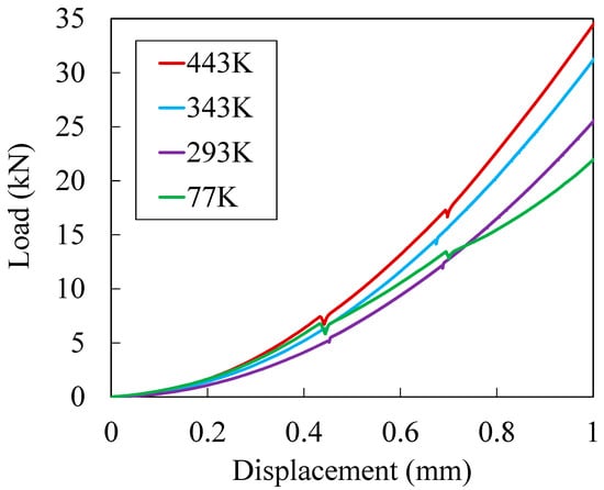 Figure 5 shows the load–displacement relationships for all the tests at different temperatures. For the tests at temperatures above room temperature, the load increased with an increase in temperature regardless of the change in the displacement rate. This increase in the load is attributed to the precipitates formed by artificial aging. At 77 K, a decrease in the displacement rate lowered the increase rate of the load as the displacement increased as compared to the other temperatures.