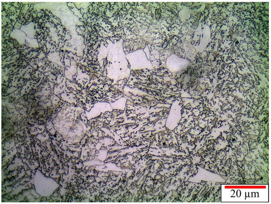 For this work, hot rolled bars of a DIN 18MnCrSiMo6-4 (HSX 130) steel from Swisstec (Swiss Steel), Emmenbrücke, Switzerland, with 43 mm of diameter were employed. The bars were directly air-cooled after hot rolling. Table 1 gives the chemical composition of the steel, and the as-received microstructure is shown in Figure 1.