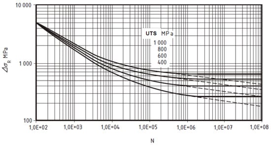 - Haibach, E. Betriebsfestigkeit: Verfahren und Daten zur Bauteilberechnung, 3rd ed.; Springer: Berlin/Heidelberg, Germany, 2006. [Google Scholar]