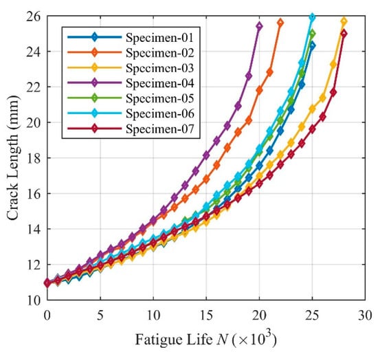 - Wang, H.; Zhang, W.; Zhang, J.; Dai, W.; Zhao, Y. Investigative method for fatigue crack propagation based on a small time scale. Materials 2018, 11, 774. [Google Scholar] [CrossRef]