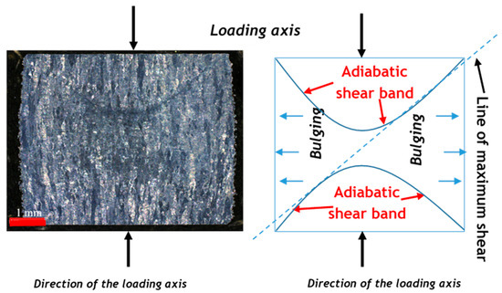 The behaviour of conventionally manufactured Ti6Al4V under dynamic loading has been the subject of various studies [13,14,15]. Generally, these studies demonstrated the positive strain rate sensitivity of the Ti6Al4V parts made by conventional manufacturing processes. In the recent past, some studies have attempted to demonstrate the dynamic deformation behaviour of AM Ti6Al4V [16,17]. In their research, Peng et al. [16] paid special attention to both the effects of strain rate as well as temperature on the tensile and compressive plastic flow and fracture characteristics of Ti6Al4V alloy produced via 3D laser deposition technology. The study observed that the flow stress under compressive and tensile loading increased with strain rate. However, the flow characteristics of the material decreased with an increase in temperature under both loading conditions. The authors concluded that compressive fracture occurred as a result of adiabatic shear bands (ASBs) that formed and expanded during deformation for all the test high strain rates. Elsewhere, Mohammadhosseini et al. [17] investigated the dynamic compressive properties of Ti6Al4V alloy produced by electron beam melting (EBM). The study concluded that the strain at fracture was lower in dynamic compared to static compression deformation. Microstructure investigation revealed the presence of ASBs in high strain rate samples. ASBs are narrow zones in which considerable local increases of temperature can be experienced due to the degeneration of part of the mechanical work of high strain rate deformation. The ASBs are usually a precursor to the final ductile or brittle fracture as a result of voids and small cracks growing and coalescing within them [18,19].