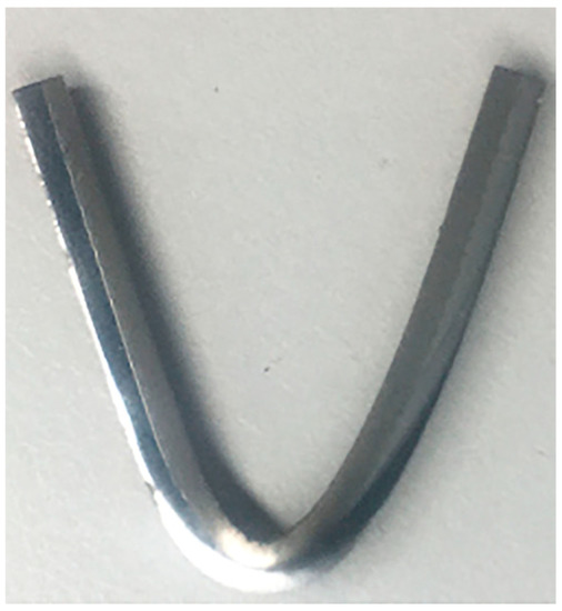 In order to analyze the delamination resistance of the bonding interface, bending properties of the TA1/LAS composite plate were investigated. A macrograph of the bent TA1/LAS composite plate is shown in Figure 10. The specimens were neither separated nor cracked after bending to the equipment’s limit (135 degrees), indicating that an acceptable joining between TA1 and LAS was obtained by explosive welding.
