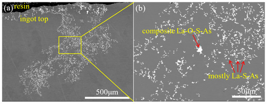 - Wang, H.; Jiang, S.; Yu, P.; Bai, B.; Sun, L.; Wang, Y. Distribution of arsenic inclusions in rare earth steel ingots. Metals 2020, 10, 146. [Google Scholar] [CrossRef]