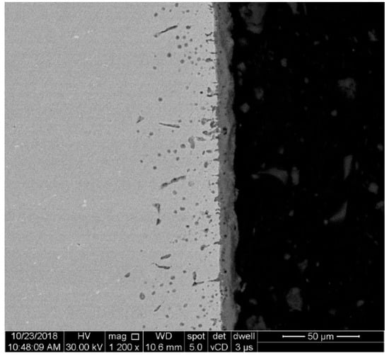 SEM image of a specimen cross-section used for oxide scale thickness measurement.