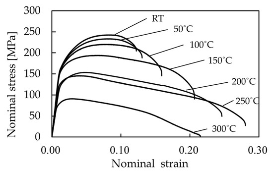 Stress–strain curves of the ZM21 rod obtained from the tensile test result under various temperature conditions.