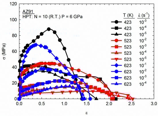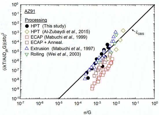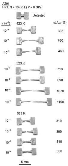 - Al-Zubaydi, A.S.J.; Zhilyaev, A.P.; Wang, S.C.; Reed, P.A.S. Superplastic behaviour of AZ91 magnesium alloy processed by high-pressure torsion. Mater. Sci. Eng. A 2015, 637, 1–11. [Google Scholar] [CrossRef]