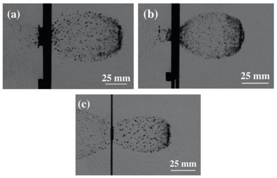 Late-time views of the debris clouds for different bumper. (a) bumper I; (b) bumper II; (c) aluminum alloy bumper.
