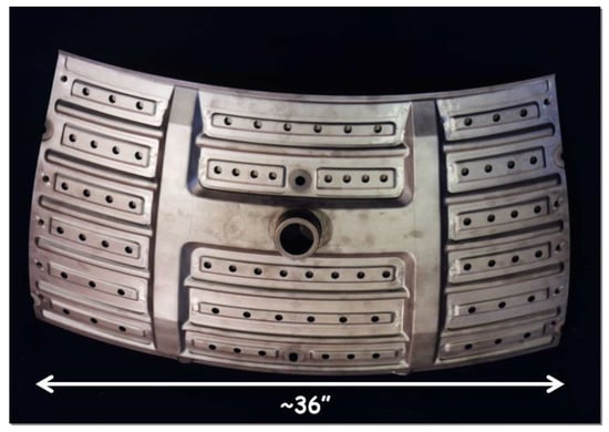 VSMPO developed a process to produce Ti-6-4 sheet with a refined, ≈2 µm α-grain size microstructure, this is compared to a typical 10–15 µm in an ordinary mill product [18]. This fine-grain Ti-6-4 exhibited similar SPF advantages as the SP-700 alloy, but the production process was complex and difficult to adequately control in the mill, making the yields low and the sheet cost too high. It was used in production at Boeing for a while, but its usage was terminated due to the high cost of the sheet [18,19]. This decision prompted further investigation into the development of fine grain Ti-6-4 at Arconic (now Howmet Aerospace) which developed another, lower cost, processing route that was economically more viable. Sheet made by this process has been approved by Boeing because of the lower cost than the VSMPO product. This alloy is capable of SPF at 815 °C and is being used in production by Boeing [20,21,22].
