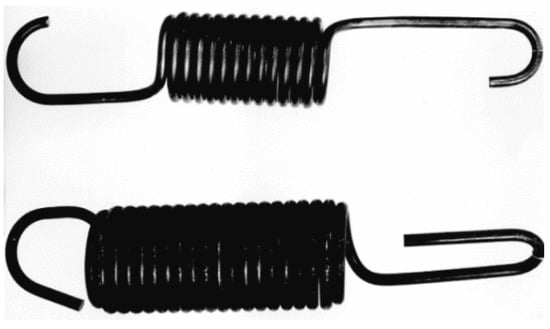 The Ti spring (top) carries the same load as the steel spring (bottom) but weighs 1.45 kg compared to 4.35 kg for the steel spring due to the lower density and the fewer coils required [30].