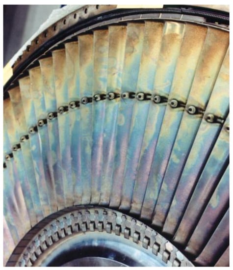 The two Ti rich intermetallic compounds in the Ti-Al alloy system are alpha-2 (α2) based on Ti3Al and gamma (γ) based on TiAl. The gamma-based alloy was described earlier because it is used for low pressure turbine blades in current production commercial aircraft engines. The decision to implement the γ-alloy for LPT air foils was based on extensive testing in a 747 class factory engine. These tests involved, among other things 1500 rejected take-off excursions which are one of the most demanding situations for an engine turbine rotor. Figure 12 shows this rotor after these tests, disassembly and several hundred hours of additional runs. This successful engine test resulted in the decision to introduce the Gamma air foils in the production GEnx engine [35].