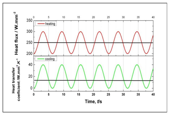 Various heating and cooling are modeled using a sinusoidal function as shown in Equations (6) and (7), while the visualization of the heating and cooling models in time series is shown in Figure 5.