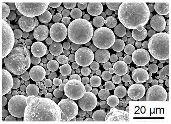 A secondary electron (SE) image of the CoCrFeMnNi alloy powder prepared by gas atomization.