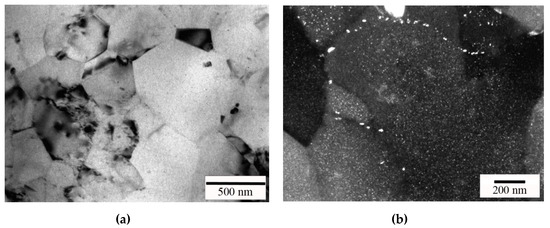 The structural changes caused by annealing were analyzed in detail using TEM. The structure annealed at 300 °C (state W300 in Table 1) contained (Al) grains and subgrains (Figure 6a), and showed the onset of Al3Zr (L12) nanoparticles formation (Figure 6b,c). However, relatively large particles reaching ≈50 nm in size also precipitated at subgrain boundaries (Figure 6d). The presence of Fe- and Zr-bearing particles were confirmed by the direct energy-dispersive X-ray spectroscopy (EDX) analysis of their composition. According to ER data (see Figure 4), the decomposition of (Al) after annealing at 300 °C should be uncompleted. Thus, part of Zr should remain in (Al).