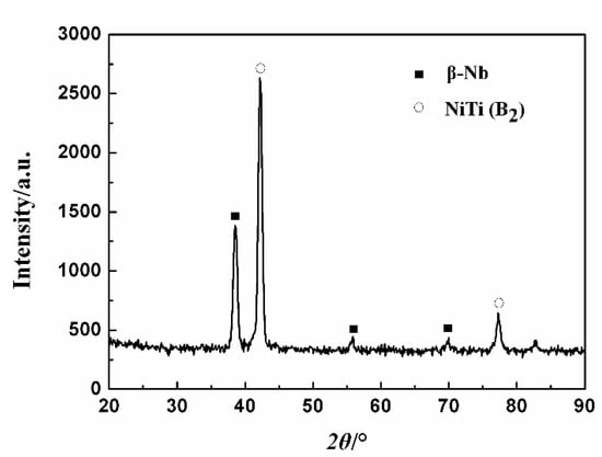 NiTi-based shape memory alloys (SMAs), due to their unique shape memory effect (SME), have been wildly used in many fields such as aerospace, biomedicine, mechanical electronics and automotive industries [,,,]. Among them, one of the most important and successful applications is the pipe joint [,,]. NiTiNb alloys, especially those with a nominal composition of Ni47Ti44Nb9 (at%), have attracted much attention as SMAs because they demonstrate wide transformation hysteresis after pre-deformation [,,,,]. Thus, pipe joints constructed from NiTiNb alloys do not require storing and installing at low temperatures, which is quite useful for the engineering uses [,,].
