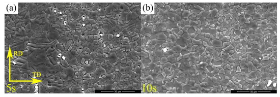 On the other hand, second-phase particles are conducive to promoting the nucleation rate of recrystallization grains under the facilitation role in the formation of high-density dislocations and shear bands in the vicinity of the grain boundary and sub-grain boundary. The isolated particle with coarse size (d > 1 μm) can provide a nucleation site by the PSN mechanism [24]. Moreover, recrystallization behavior can be enhanced by the distribution of particles in close proximity. The cluster of fine particles can induce the activation of the PSN mechanism [41].