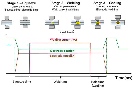 The process of resistance spot welding. Reprinted from [33], with permission of Taylor and Francis, 2018, http://www.tandfonline.com.
