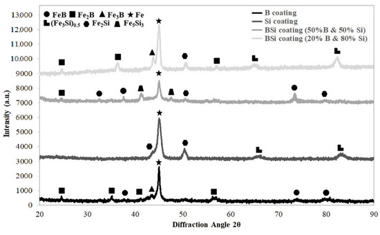 | B-Si coating (20% B, 80% Si) | 1 | 79.9 | 15.0 | 5.1 |