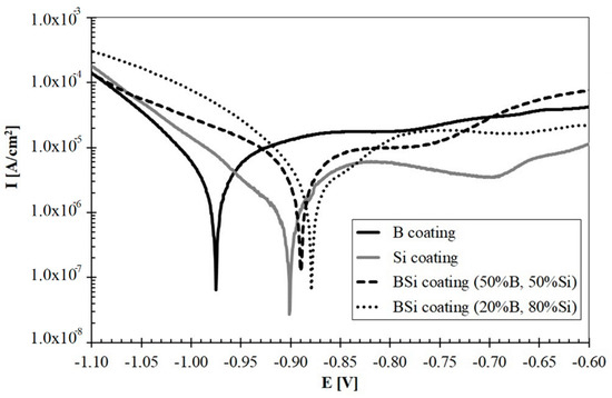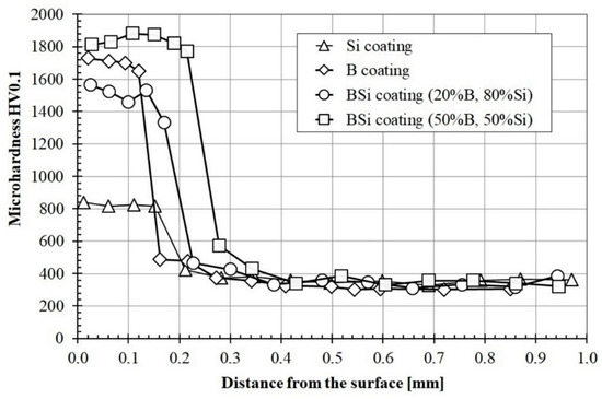 | B-Si coating (50% B, 50% Si) | 1 | 81.9 | 17.2 | 0.9 |